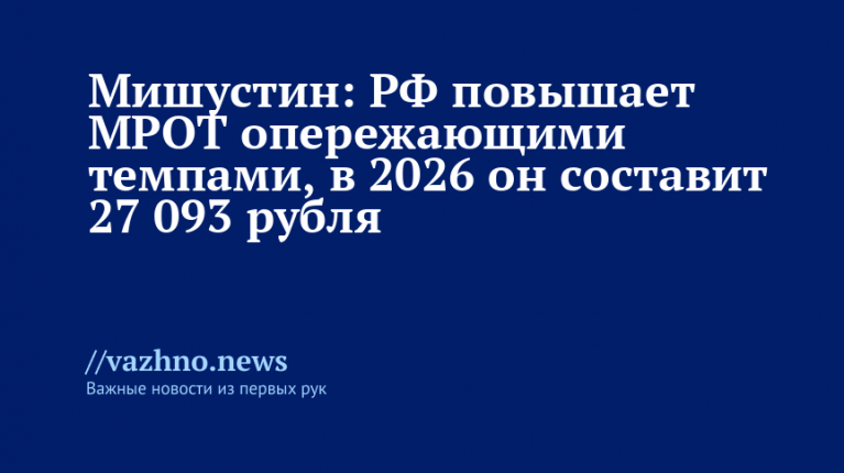 Мишустин: в 2026 МРОТ в РФ достигнет 27 093 рублей опережающими темпами