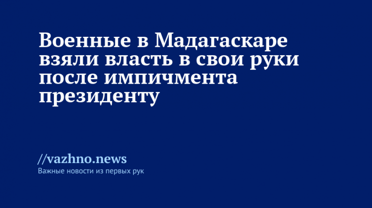 Военные в Мадагаскаре после объявления импичмента президенту Андри Радзуэлине заявили 14 октября, что берут управление страной в свои руки. Об этом сообщает агентство Reuters.