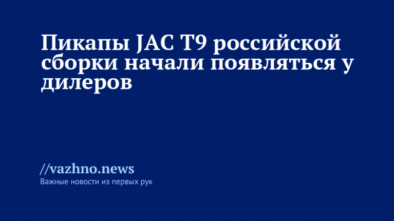 В России начался выпуск пикапа JAC T9, и экземпляр отечественного производства уже представлен в одном из дилерских центров. Об этом 14 октября сообщает Quto.