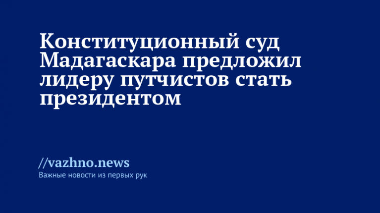 «Верховный суд Мадагаскара во вторник пригласил командующего армией, полковника Майкла Рандрианирину, занять пост нового президента страны. Суд призвал Рандрианирину провести новые выборы в течение 60 дней», — говорится в сообщении.