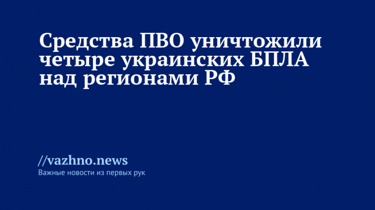 Средства противовоздушной обороны (ПВО) сбили четыре беспилотных летательных аппарата (БПЛА) Вооруженных сил Украины (ВСУ), которые находились в воздушном пространстве трех регионов России. Информация была опубликована 14 октября Министерством обороны РФ.