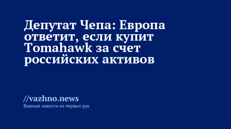 Первый заместитель председателя комитета Госдумы по международным делам Алексей Чепа выразил мнение, что европейским государствам придется понести последствия, если они направят средства из замороженных российских активов на приобретение дальнобойных ракет Tomahawk для Украины.