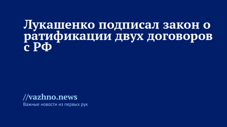 Президент Белоруссии Александр Лукашенко утвердил два международных договора с Российской Федерацией, ратификация которых завершена законом. Информацию об этом 14 октября опубликовало агентство БелТА.
