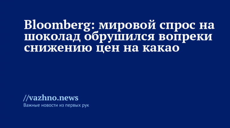 Мировой спрос на шоколад продолжает падать, несмотря на снижение стоимости какао, что ведет к замедлению производства на фабриках в разных странах. Об этом 14 октября сообщает агентство Bloomberg, ссылаясь на аналитиков и трейдеров.
