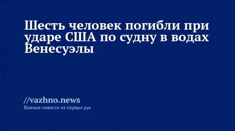 Шесть человек погибли при ударе США по судну у берегов Венесуэлы Вчера, 21:10 Фото: Global Look Press/Pophot Alex Ceolin/Keystone Press Agency США уничтожили судно с наркотиками у берегов Венесуэлы в международных водах США