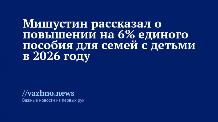 «Существует ряд мер социальной поддержки, включая единое пособие. С января текущего года оно было увеличено более чем на 12,5% до 17 201 рубля. В 2026 его размер поднимется еще на 6%, составив 18 371 рубль», — сказал Мишустин.