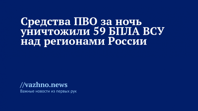 ПВО России уничтожили 59 украинских дронов за одну ночь над разными регионами.