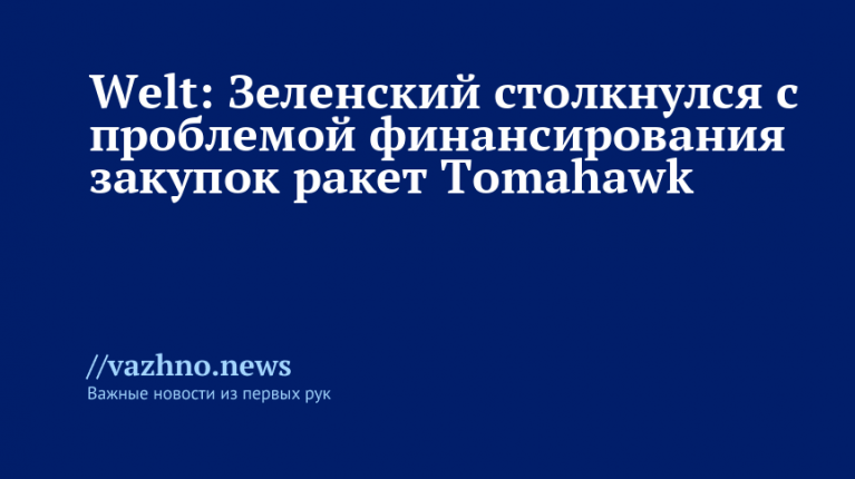 Президент Украины Владимир Зеленский за день до встречи с президентом США Дональдом Трампом столкнулся с вопросом финансирования закупок американских ракет дальнего действия Tomahawk. Об этом 14 октября сообщил корреспондент телеканала Welt Кристоф Ваннер.