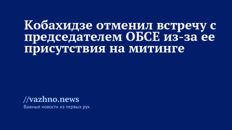 Премьер-министр Грузии Ираклий Кобахидзе отменил намеченную встречу с главой Организации по безопасности и сотрудничеству в Европе (ОБСЕ) Элиной Валтонен из-за ее участия в митинге, который состоялся 14 октября в Тбилиси. 15 октября об этом сообщил Telegram-канал «Sputnik Грузия» со ссылкой на официальное заявление правительства страны.