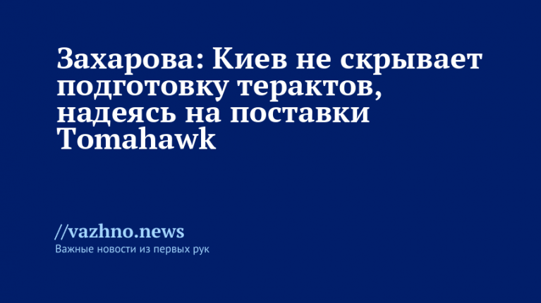 Киев открыто готовит теракты против России в обмен на поставки ракет Tomahawk. Об этом 15 октября сообщила на брифинге официальный представитель МИД России Мария Захарова.