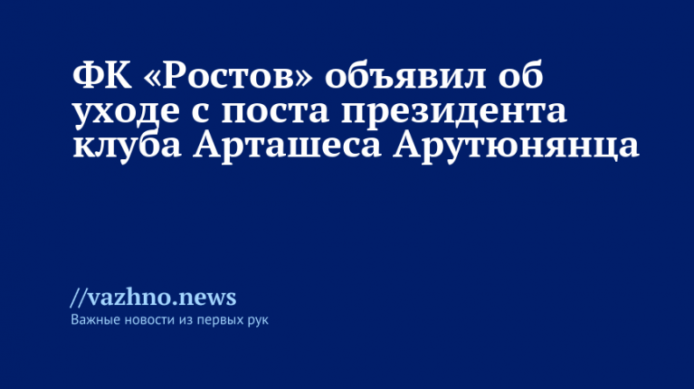 Футбольный клуб (ФК) «Ростов» сообщил о том, что Арташес Арутюнянц покидает должность президента команды. Данная новость была опубликована 15 октября на официальном сайте клуба.