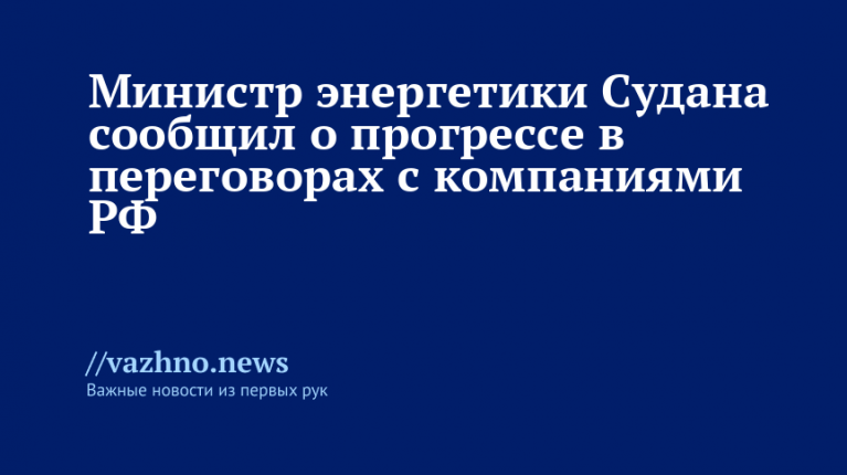 Судан вместе с российскими компаниями продвигаются в процессе переговоров, касающихся разведки, добычи и развития нефтяных месторождений. Об этом министр энергетики и нефтяной промышленности Судана Аль-Муатасим Ибрагим сообщил «Известиям» 15 октября.
