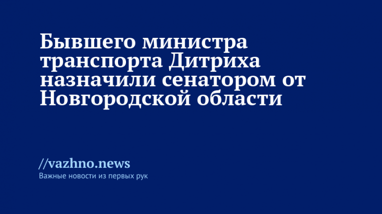 Экс-министр транспорта России Евгений Дитрих получил назначение на должность сенатора, представляющего Нижегородскую область. Об этом 15 октября сообщил губернатор региона Александр Дронов.