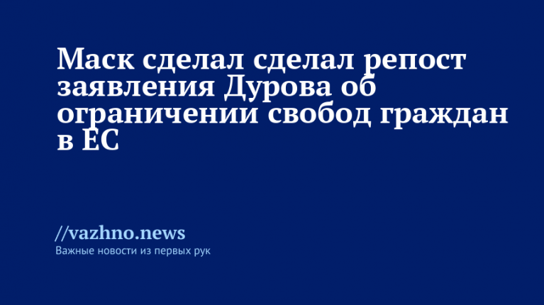 Американский бизнесмен Илон Маск 15 октября отреагировал на сообщение основателя Telegram Павла Дурова о том, что Франция продвигает закон Chat Control, направленный на контроль онлайн-переписки жителей Евросоюза.