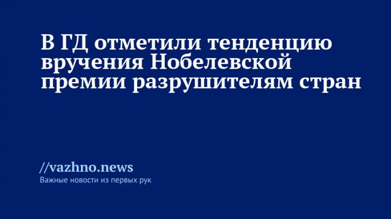 В Госдуме заметили тренд награждения Нобелем разрушителей стран