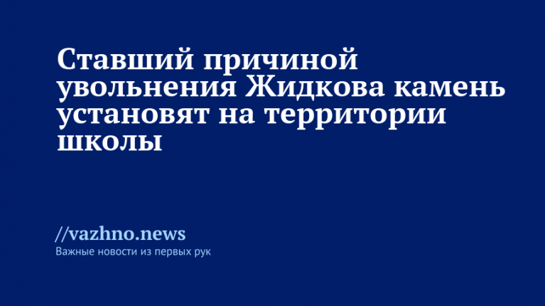 Камень, ставший причиной увольнения Жидкова, установят у школы