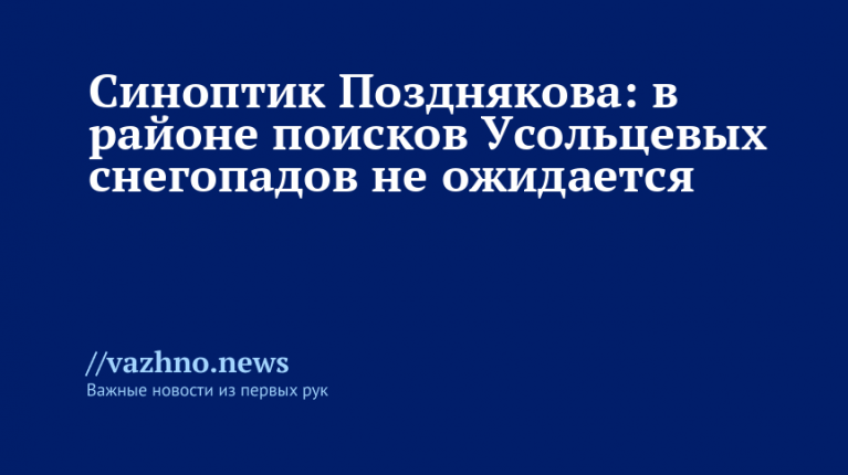 Ведущий эксперт агентства «Метеоновости» Татьяна Позднякова прокомментировала изменения погоды на территории Красноярского края, где продолжаются поиски семьи Усольцевых.