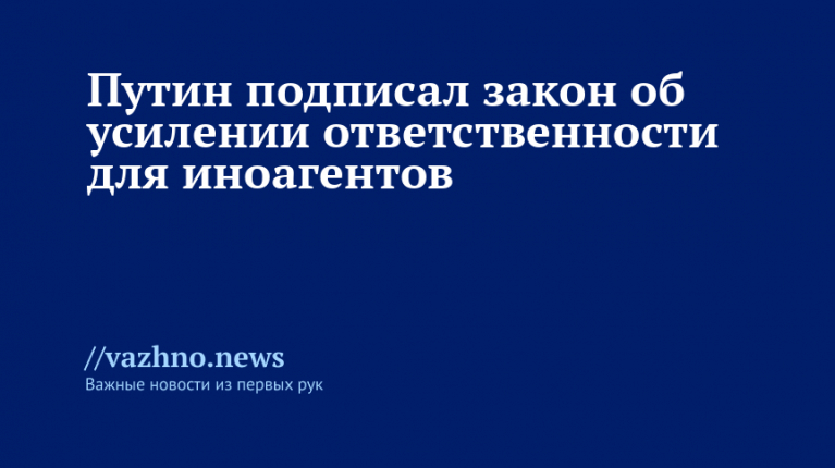 Президент России Владимир Путин 15 октября утвердил закон, усиливающий ответственность иностранных агентов за нарушение условий их деятельности. Соответствующий законопроект размещен на официальном интернет-портале правовых актов.