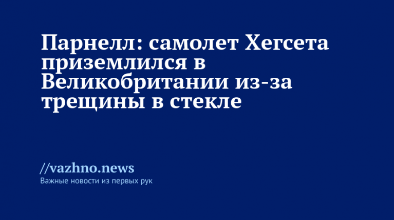 «Во время возвращения в США из Брюсселя после встречи министров обороны НАТО самолет министра обороны Хегсета совершил вынужденную посадку в Великобритании из-за повреждения лобового стекла», — опубликовал он сообщение в своем аккаунте в соцсети X (ранее Twitter).