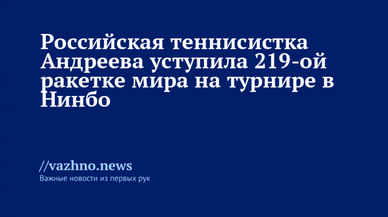 Российская теннисистка Мирра Андреева потерпела поражение от китайской спортсменки Чжу Линь, которая занимает 219-е место в мировом рейтинге, во втором раунде турнира, проходившего в Нинбо. Матч завершился 15 октября с результатом 6:4, 3:6, 2:6.