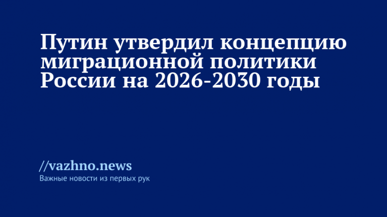 Президент России Владимир Путин 15 октября подписал указ, которым утверждена концепция миграционной политики на период 2026–2030 годов. Этот документ размещен на официальном интернет‑портале правовой информации.