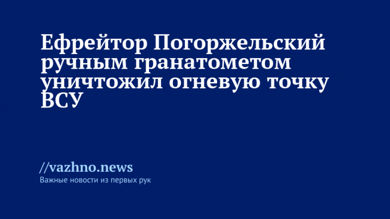 Ефрейтор Павел Погоржельский применил ручной гранатомет для ликвидации огневой точки Вооруженных сил Украины (ВСУ) в рамках специальной военной операции (СВО). Об этом в четверг, 16 октября, сообщило Министерство обороны Российской Федерации.