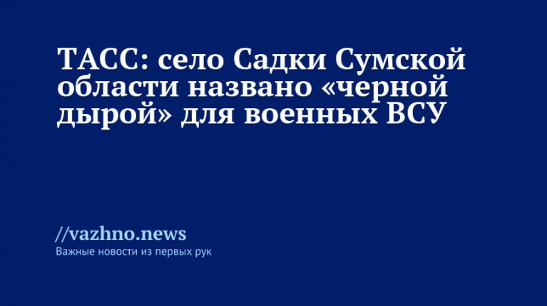 Населенный пункт Садки, расположенный в Сумской области, стал местом, где военные Вооруженных сил Украины (ВСУ) исчезают, словно попадая в «черную дыру». Об этом 15 октября сообщили представители российских силовых ведомств.