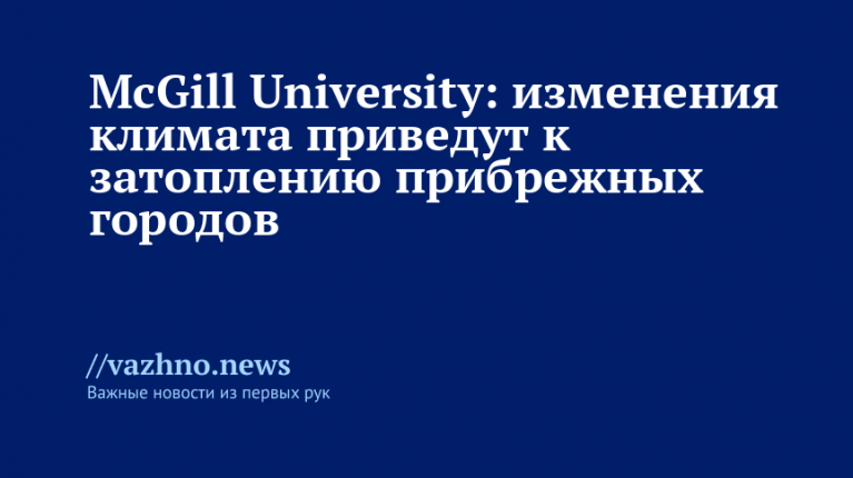 Рост уровня мирового океана способен вызвать затопление прибрежных городов по всему миру. Такие выводы представлены в исследовании, проведённом учеными канадского Университета Макгилла (McGill University), публикация которого вышла 29 августа.