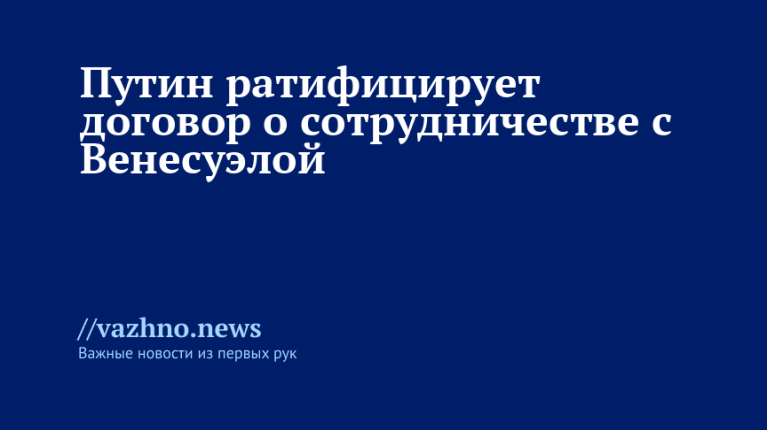 Президент России Владимир Путин направил в Государственную думу на ратификацию договор о стратегическом партнерстве и сотрудничестве с Венесуэлой. Данный документ был опубликован 16 октября на официальном портале нижней палаты парламента.