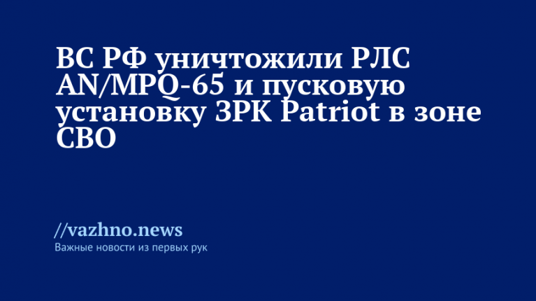 Вооруженные силы России в рамках специальной военной операции (СВО) уничтожили радиолокационную станцию (РЛС) AN/MPQ-65, а также кабину управления и пусковую установку американского зенитного ракетного комплекса (ЗРК) Patriot. Соответствующая информация была обнародована Министерством обороны России 16 октября.