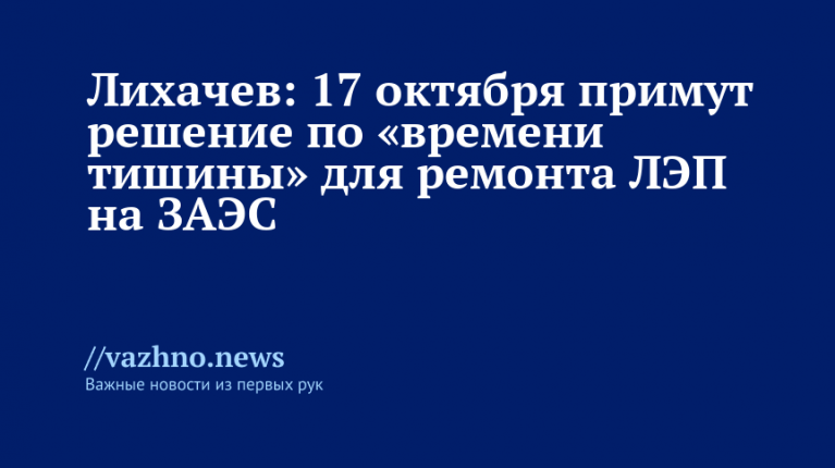 Примерно в пятницу, 17 октября, могут принять решение о введении «времени тишины» для проведения ремонта линий электропередачи (ЛЭП) внешнего энергоснабжения Запорожской атомной электростанции (ЗАЭС). Об этом 16 октября сообщил генеральный директор «Росатома» Алексей Лихачев в интервью «Известиям».