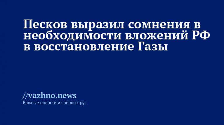 Россия не входит в число участников соглашения по сектору Газа, поэтому вряд ли должна инвестировать в восстановление территории. Тем не менее, Москва выражает готовность помочь палестинскому народу и оказать необходимую поддержку. Об этом 16 октября сообщил «Известиям» пресс-секретарь президента РФ Дмитрий Песков.