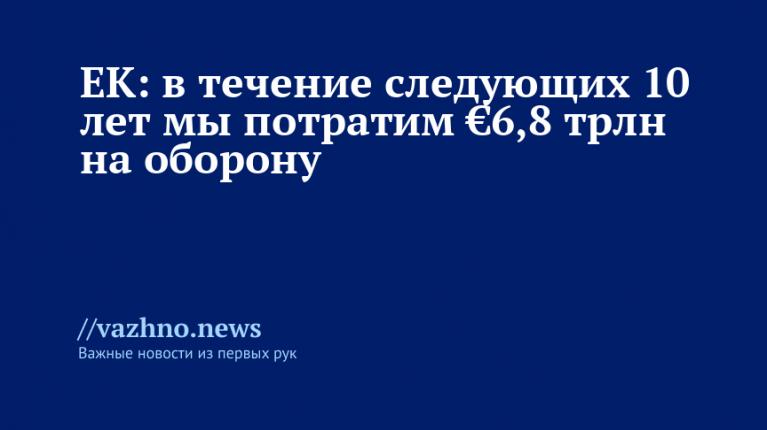 «В течение десятилетнего периода расходы на оборону и вооружение достигнут €6,8 трлн, что при использовании стандартов НАТО составляет около 40–50%, то есть примерно €3,5 триллиона», — подчеркнул он.