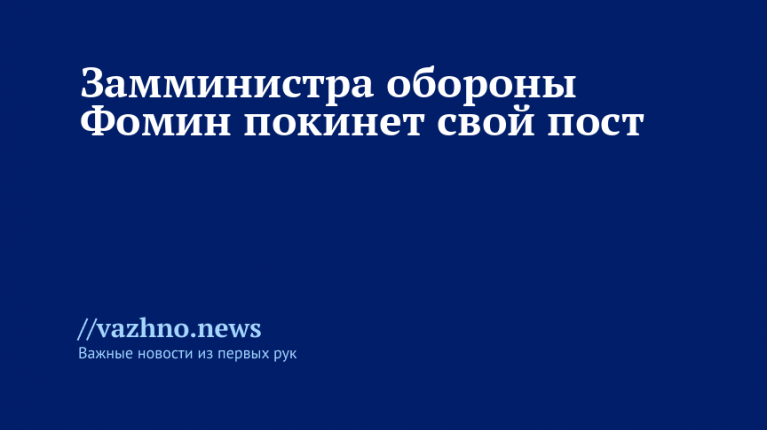 Генерал-полковник Александр Фомин, занимающий пост заместителя министра обороны России, в ближайшее время покинет свою должность. Об этом 16 октября рассказал источник, близкий к «Известиям».