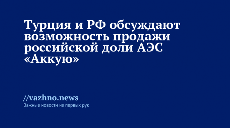 Турция совместно с Россией рассматривает возможность реализации продажи российской доли в проекте АЭС «Аккую», сообщил «Известиям» замминистра энергетики и природных ресурсов Турции Зафер Демирджан. В «Росатоме» подтвердили готовность продать до 49% акций заинтересованному инвестору, что соответствует условиям соглашения 2010 года. Эксперты предполагают, что полученные от сделки средства госкорпорация сможет инвестировать в строительство новой атомной станции, например в Синопе. Подробнее о развитии ядерного сотрудничества между Россией и Турцией в материале «Известий».