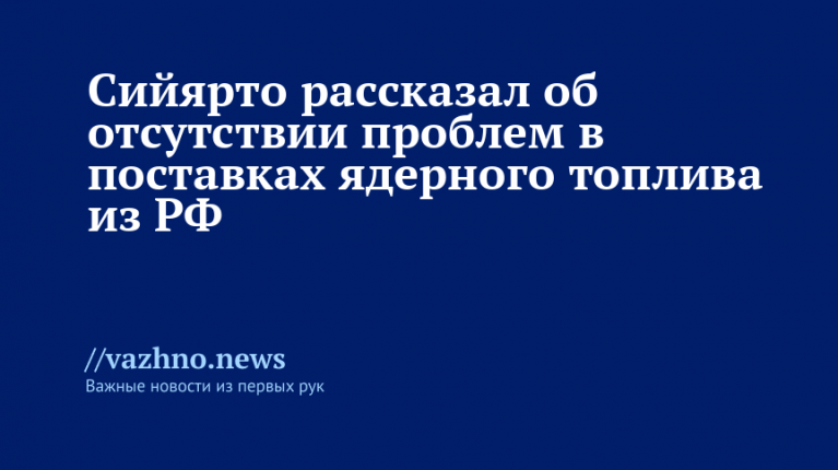 Глава МИД Венгрии Петер Сийярто сообщил «Известиям», что поставки российского ядерного топлива в Венгрию проходят без трудностей.