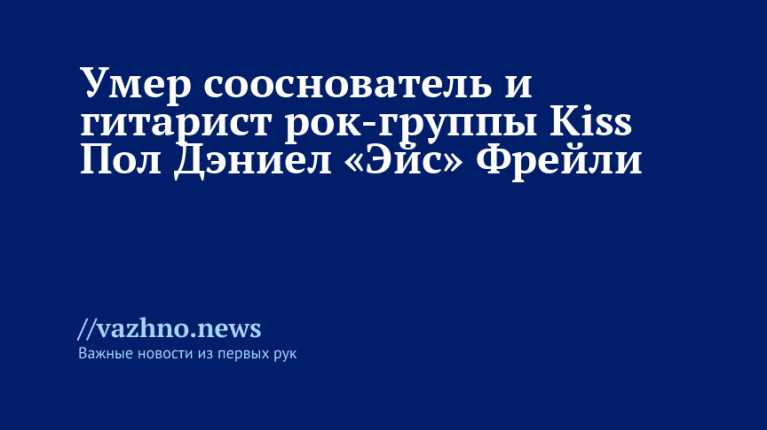 Пол Дэниел «Эйс» Фрейли, один из основателей и ведущий гитарист знаменитой рок-группы Kiss, скончался в возрасте 74 лет. Причиной смерти стали травмы, полученные при падении в прошлом месяце. Об этом 16 октября проинформировала газета Variety.
