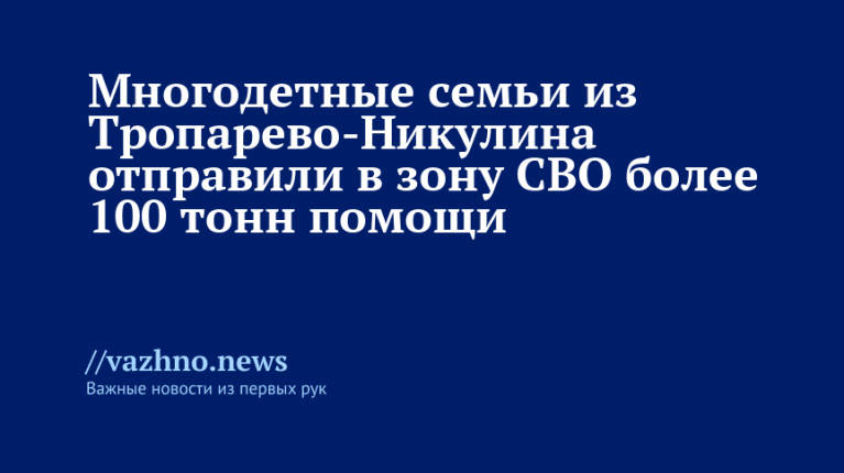 Многодетные семьи Тропарево-Никулина отправили в СВО 100 тонн помощи