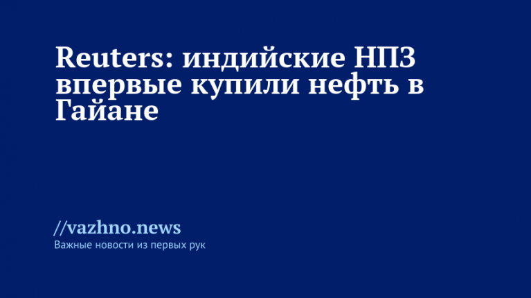 В сообщении говорится, что «два индийских НПЗ закупили 4 млн баррелей гайанской сырой нефти у американской компании Exxon».