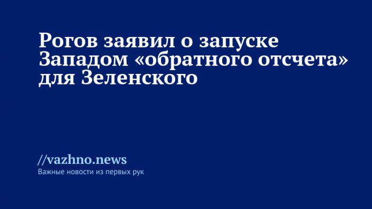 Запад начал обратный отсчет для президента Украины Владимира Зеленского, требуя подтверждений способности Вооруженных сил Украины (ВСУ) сдерживать наступление российских войск. Об этом 17 октября сообщил председатель комиссии Общественной палаты РФ по вопросам суверенитета и сопредседатель координационного совета по интеграции новых регионов Владимир Рогов.