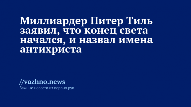 Питер Тиль заявил о начале конца света и назвал имена антихриста