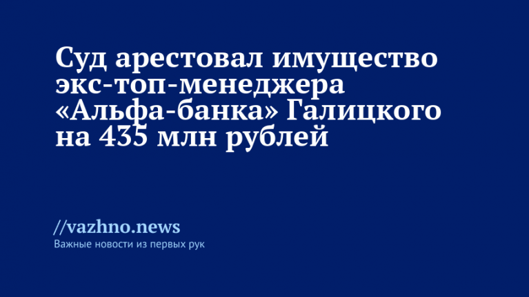 Пресненский суд Москвы наложил арест на имущество, принадлежащее Александру Галицкому, бывшему члену совета директоров «Альфа-банка», стоимостью 435 млн рублей. Об этом 17 октября сообщает «РИА Новости», ссылаясь на материалы дела.