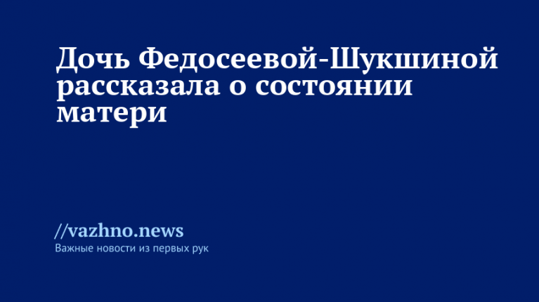 По информации дочери, Федосеева-Шукшина покинет медицинское учреждение в понедельник, 20 октября.