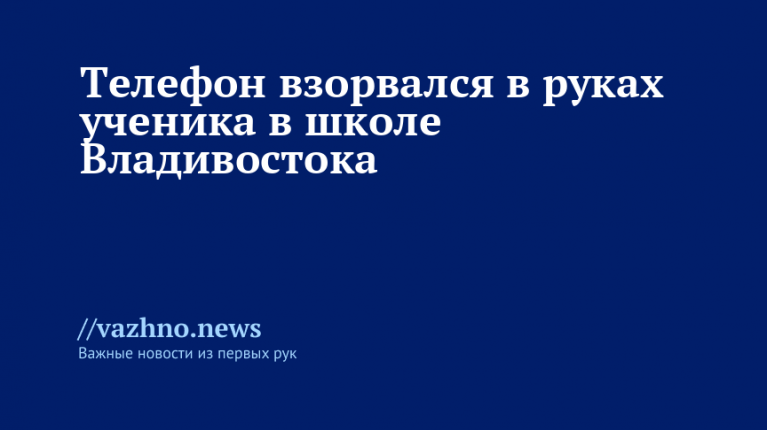В одной из школ Владивостока у ученика во время перемены в руках взорвался мобильный телефон. К счастью, происшествие обошлось без пострадавших. Из здания школы были эвакуированы все ученики и персонал.