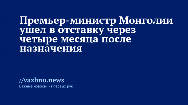 «Премьер-министр Монголии Гомбожавын Занданшатар покинул свой пост из-за утраты поддержки в парламенте страны», — говорится в сообщении.
