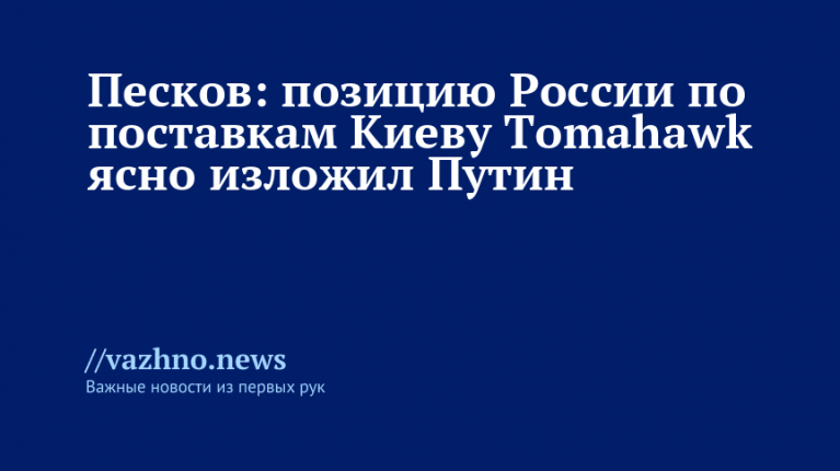 Позиция России по вопросу поставок американских дальнобойных ракет Tomahawk Украине была четко озвучена президентом страны Владимиром Путиным. Об этом 17 октября сообщил на брифинге официальный представитель Кремля Дмитрий Песков.
