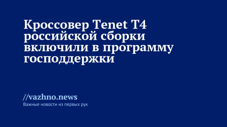 Кроссовер Tenet T4 российской сборки вошел в программу господдержки