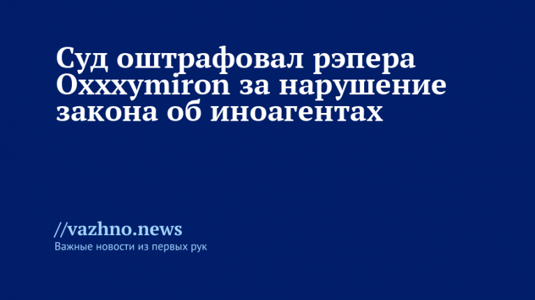 Куйбышевский районный суд Санкт-Петербурга наложил штраф в размере 120 тысяч рублей на рэпера Oxxxymiron (настоящее имя Мирон Федоров, признанный в России иностранным агентом) по статье о несоблюдении порядка деятельности иностранного агента. Об этом стало известно 17 октября из сообщения в Telegram-канале объединенной пресс-службы судов города.