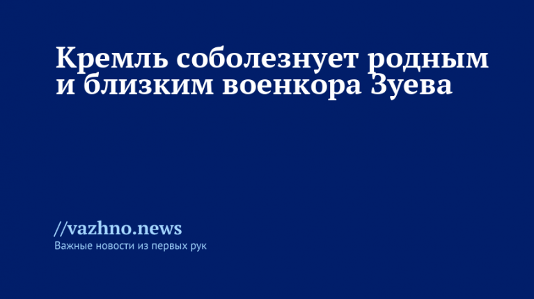 «Мы выражаем глубокие соболезнования близким и родным Зуева. Это крайне трагичная потеря. Известно, что киевский режим сознательно часто наносит удары по представителям СМИ. Это является преступлением. Безусловно, виновные обязаны понести наказание — это первоочередная задача», — отметил Песков.