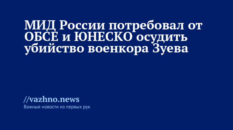 МИД России потребовал от ОБСЕ и ЮНЕСКО осудить убийство военкора Зуева